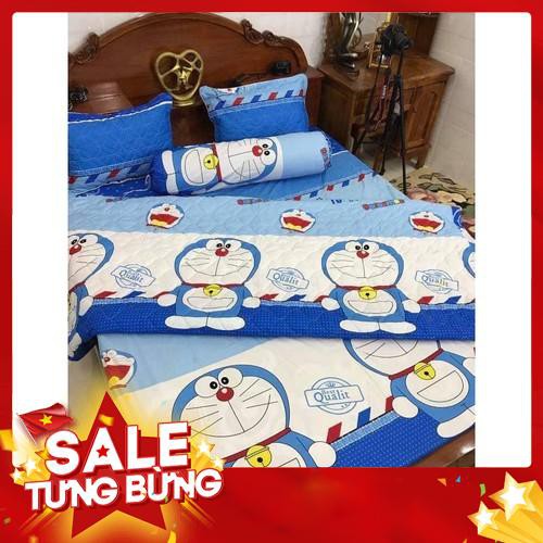 Chăn Ga Gối Sét Hè Poly Mẫu Doremon Ngộ Nghĩnh 1M6, 1M8 - Shop Liên Lê