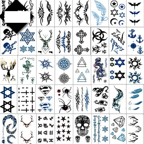 Giảm giá COMBO 50 HÌNH XĂM DÁN NAM NỮ ( lông vũ + chữ + mèo + bướm + hoa + nhịp tim + hoa văn + đầu lâu... ) còn 66,500đ